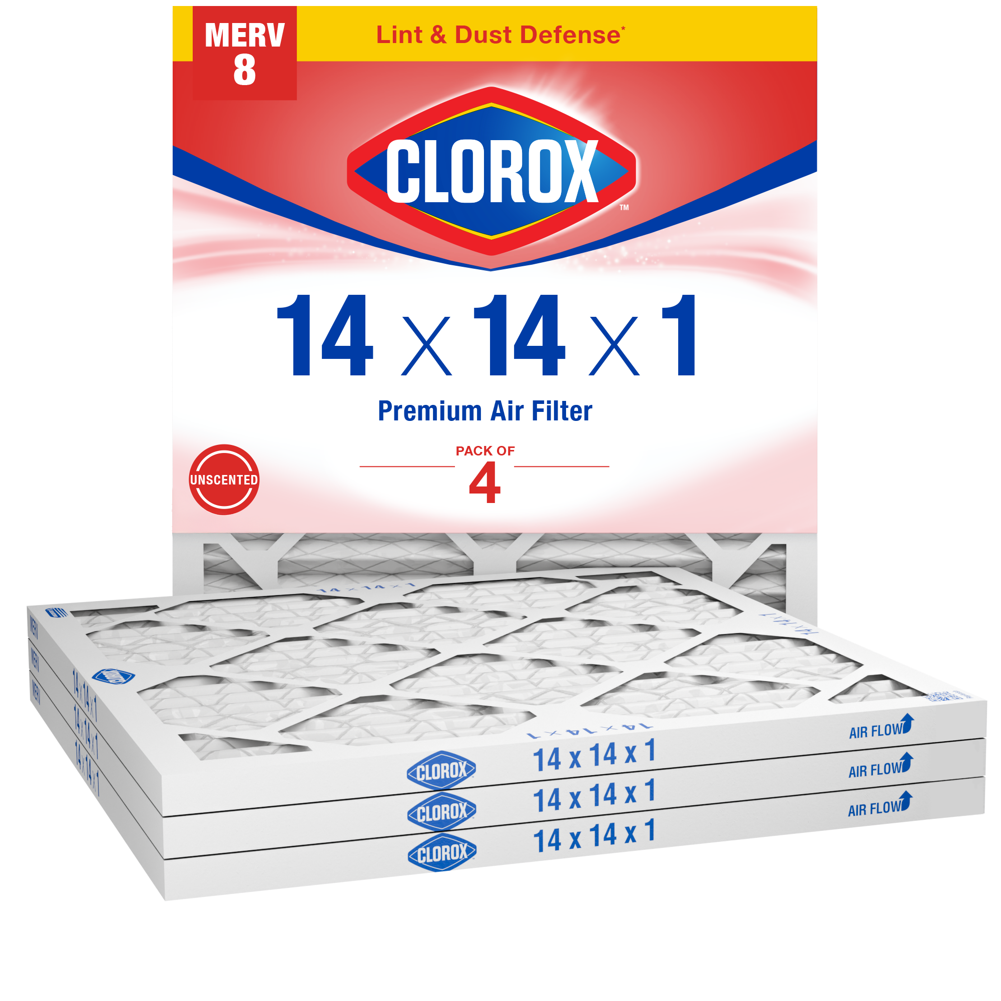 Clorox 14x14x1 Air Filter 4-Pack, Premium Pleated Furnace Filters