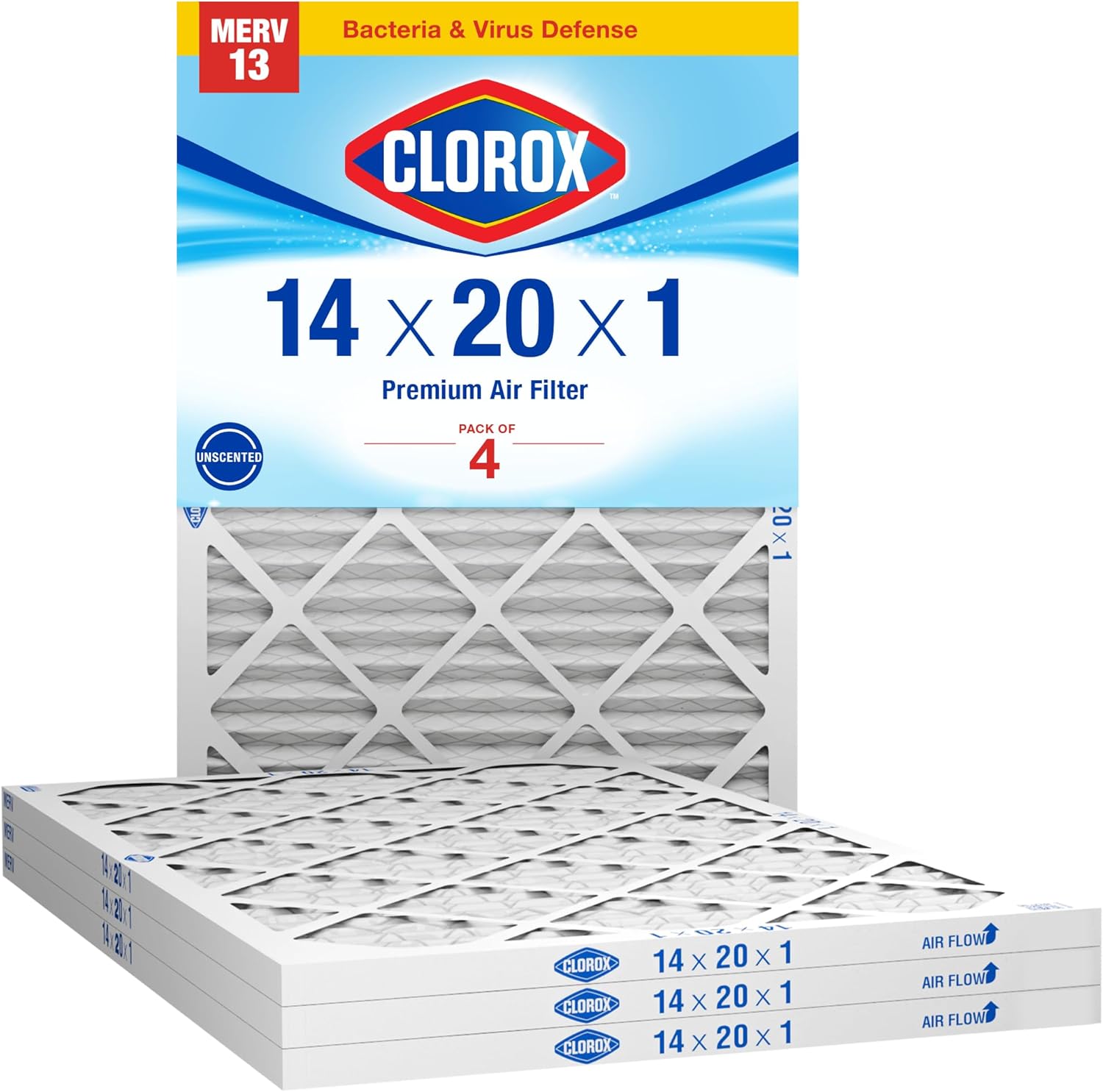 Clorox 14x20x1 Air Filter 4-Pack, Premium Pleated Furnace Filters