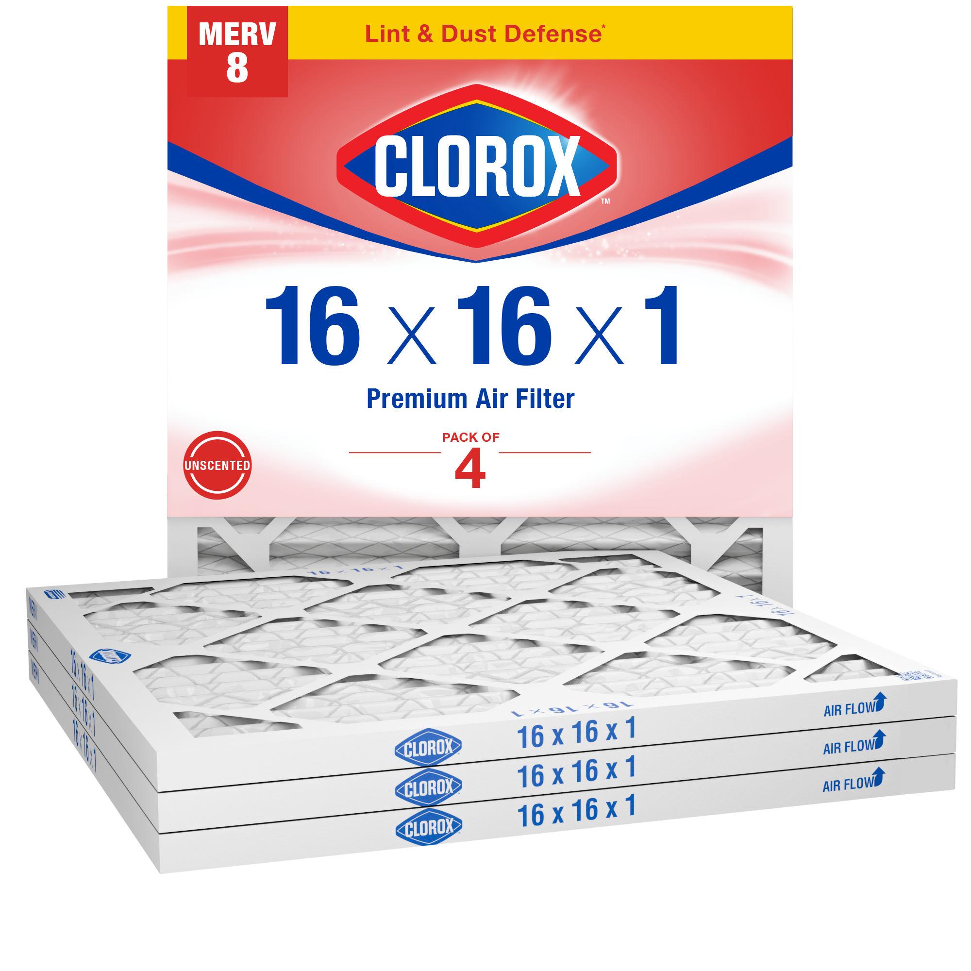 Clorox 16x16x1 Air Filter 4-Pack, Premium Pleated Furnace Filters