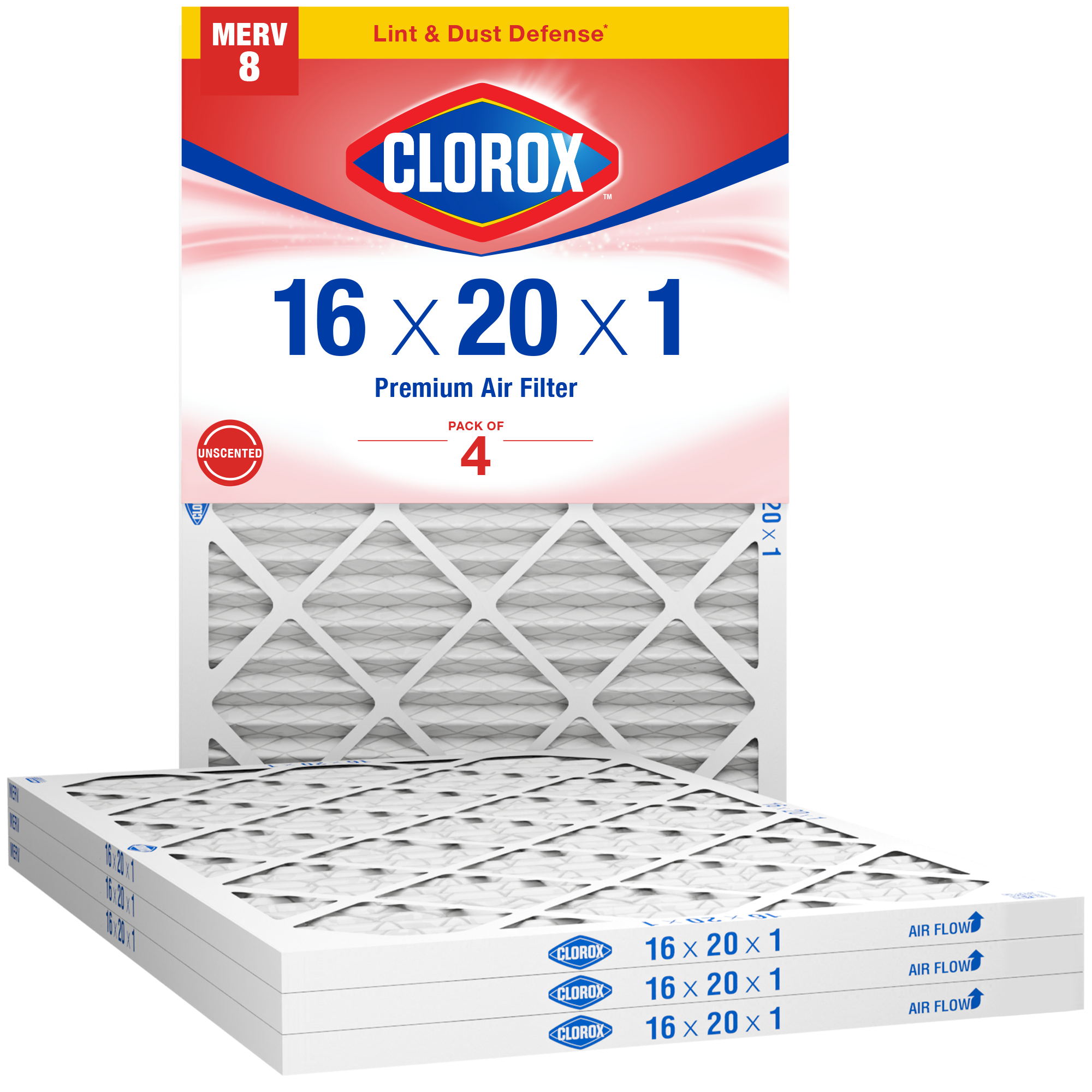 Clorox 16x20x1 Air Filter 4-Pack, Premium Pleated Furnace Filters