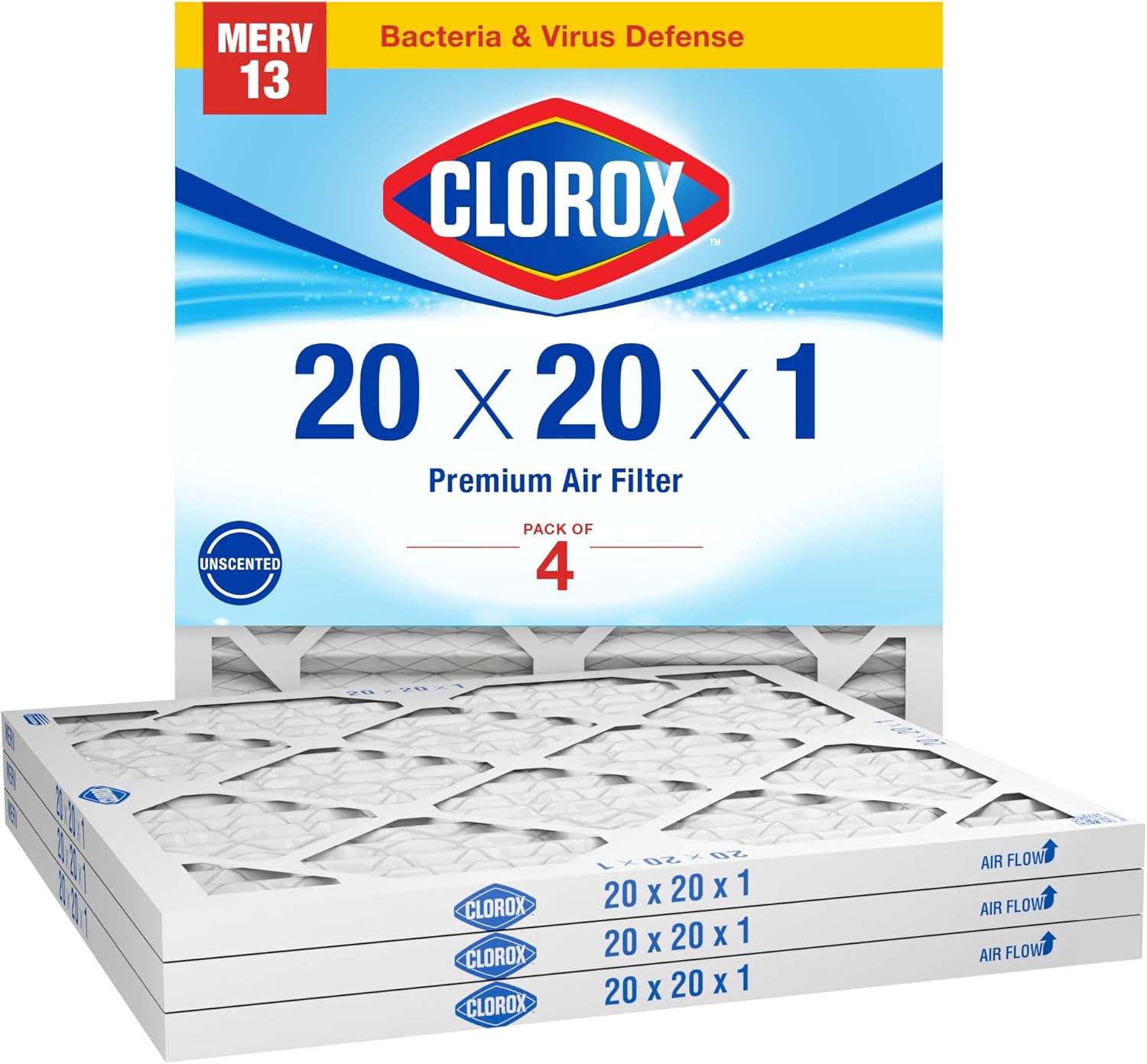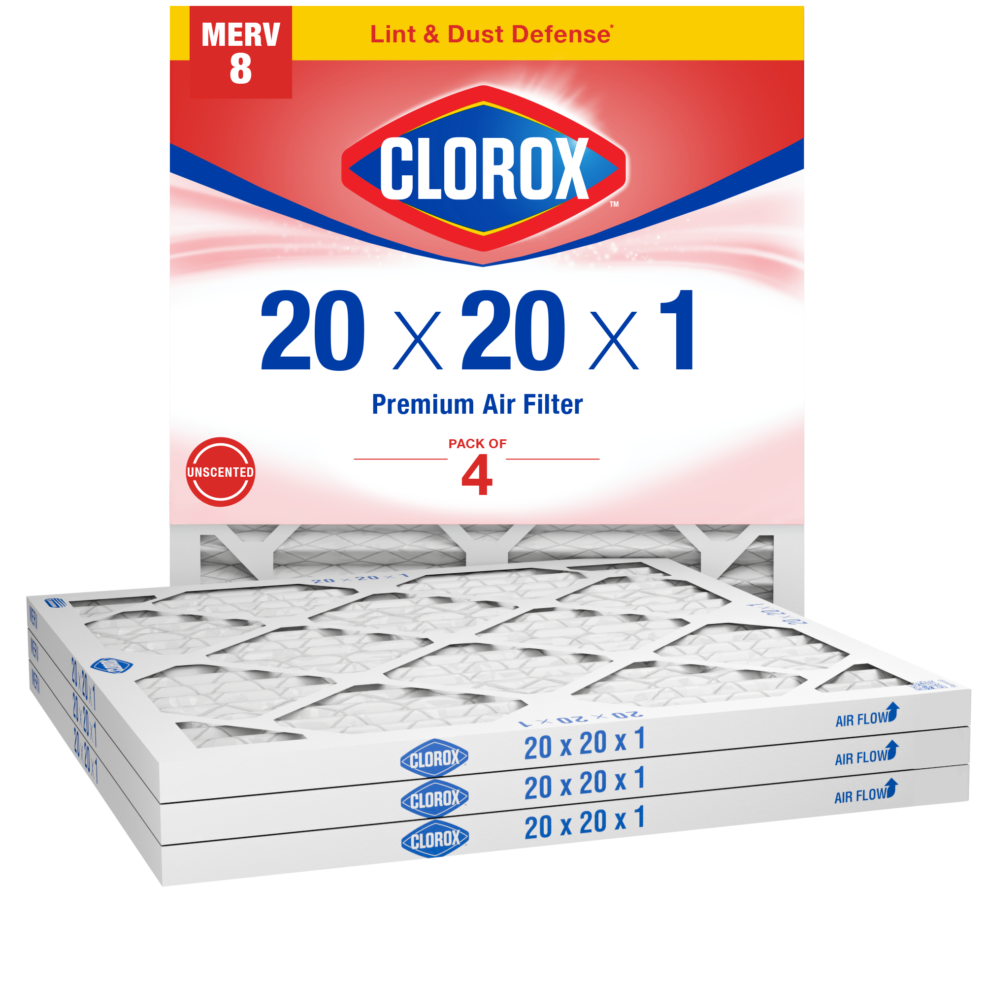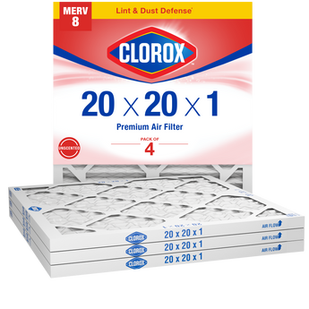 Clorox 20x20x1 Air Filter 4-Pack, Premium Pleated Furnace Filters