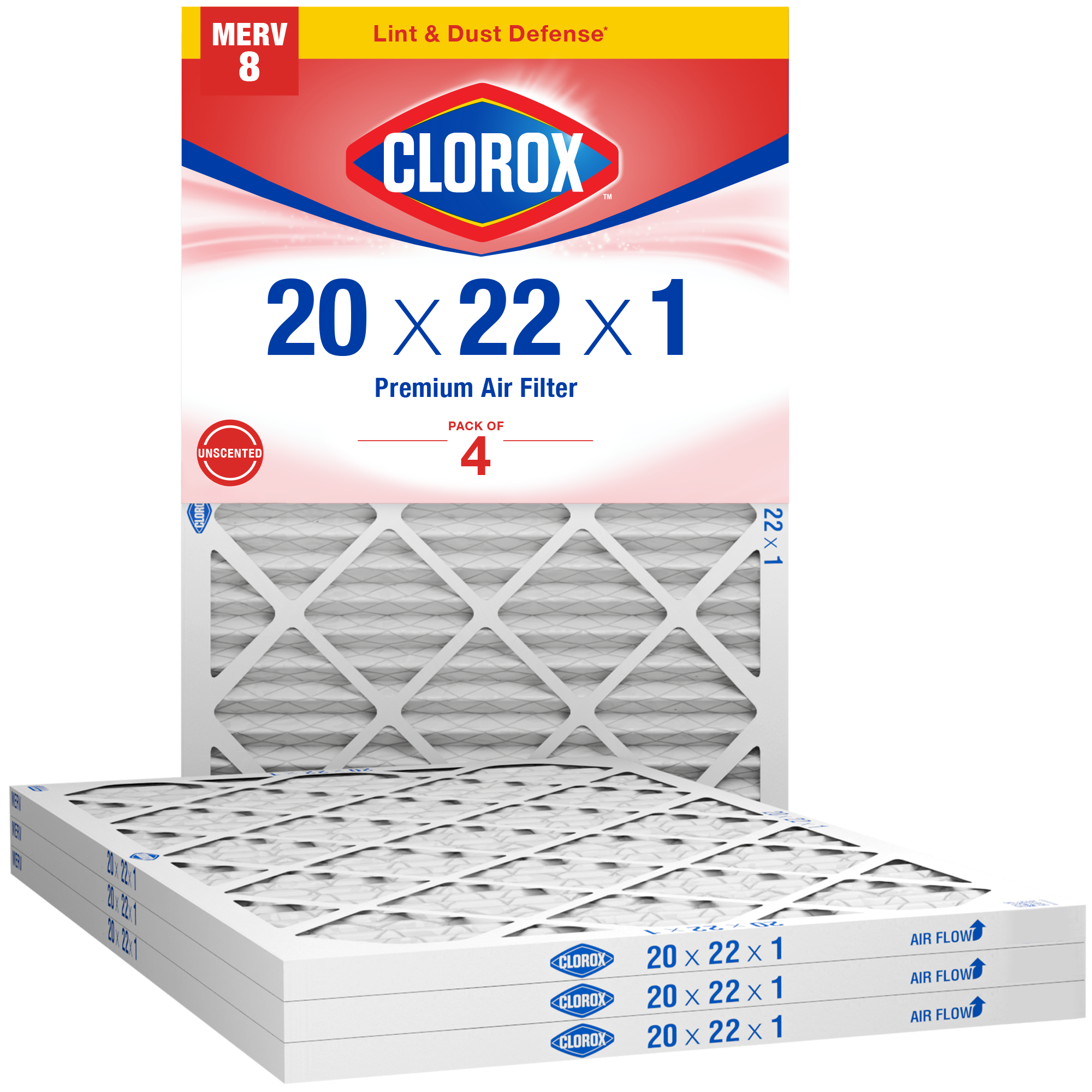 Clorox 20x22x1 Air Filter 4-Pack, Premium Pleated Furnace Filters