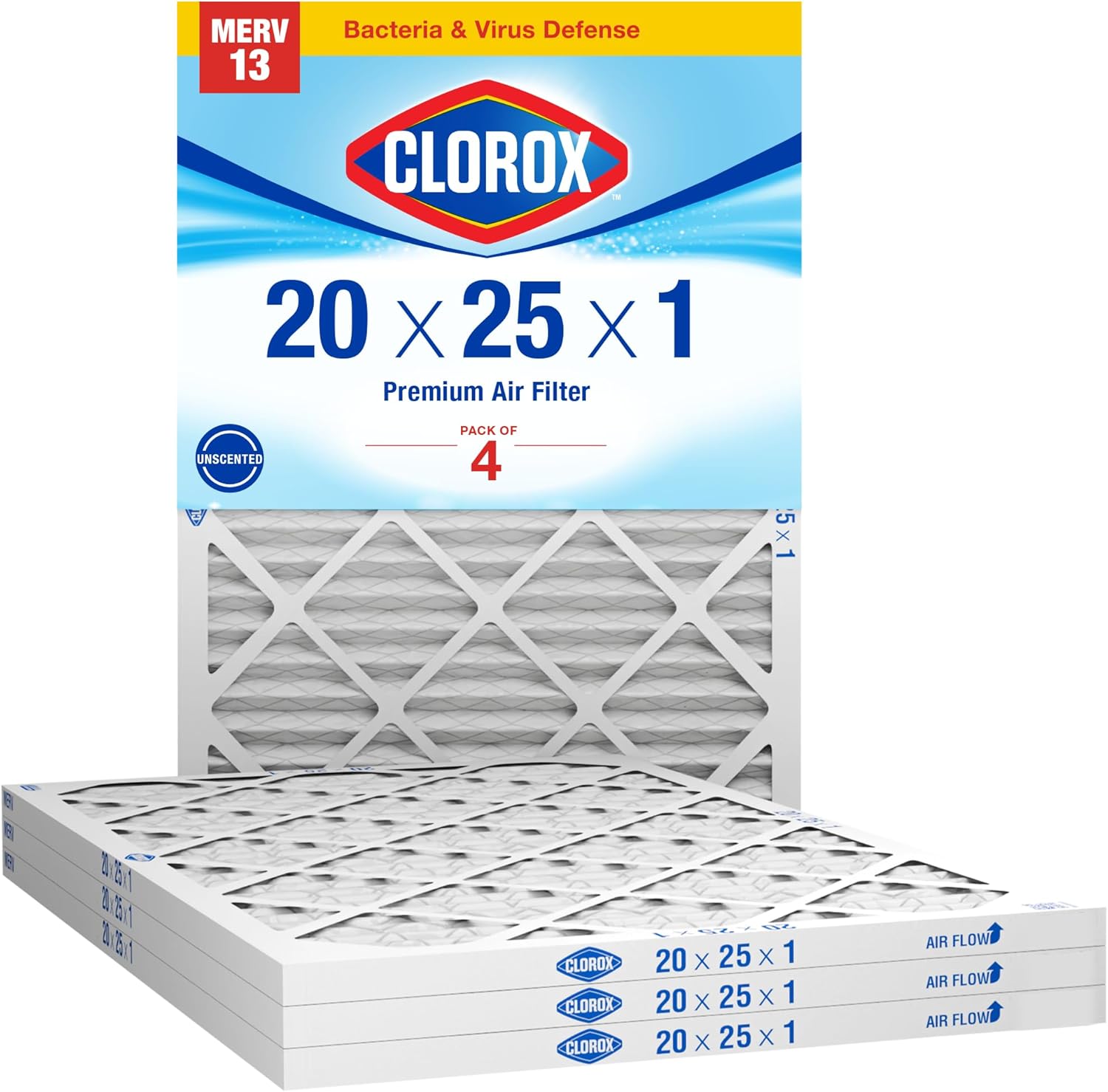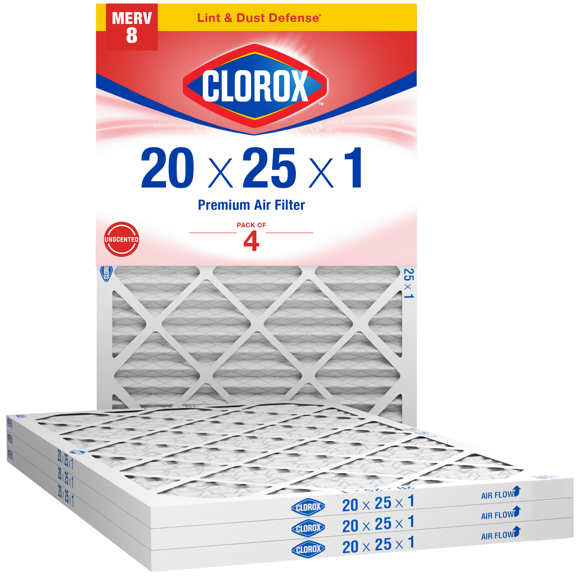 Clorox 20x25x1 Air Filter 4-Pack, Premium Pleated Furnace Filters